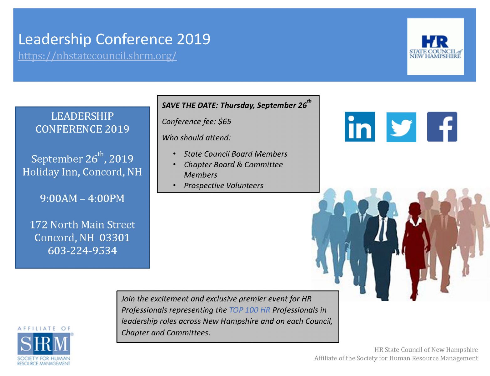To register click here: https://nhstatecouncil.shrm.org/forms/2019-leadership-conference-registration